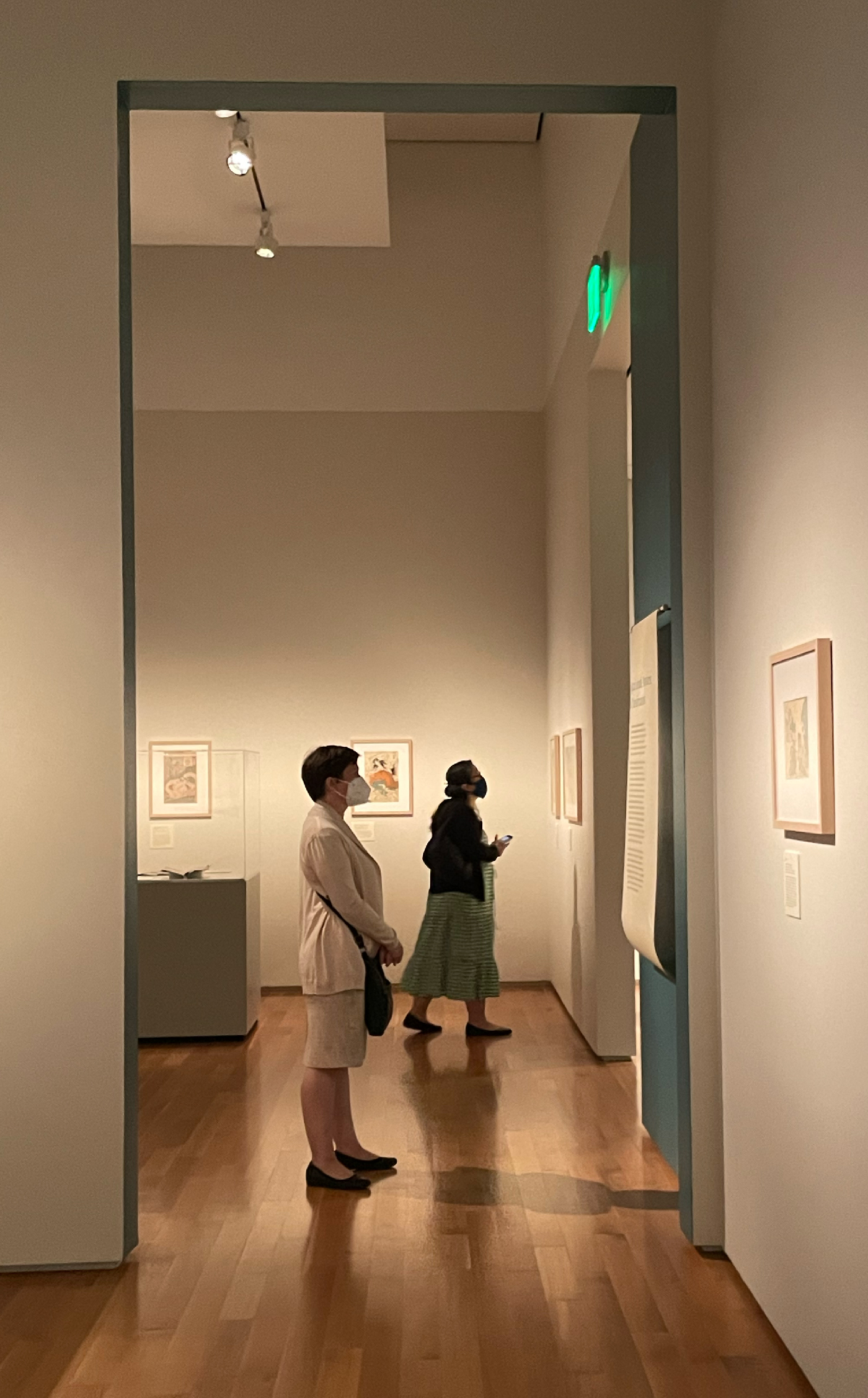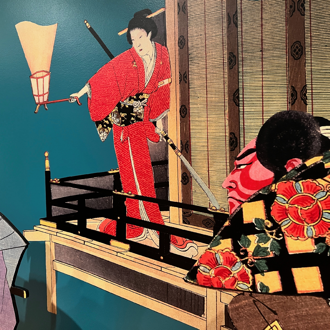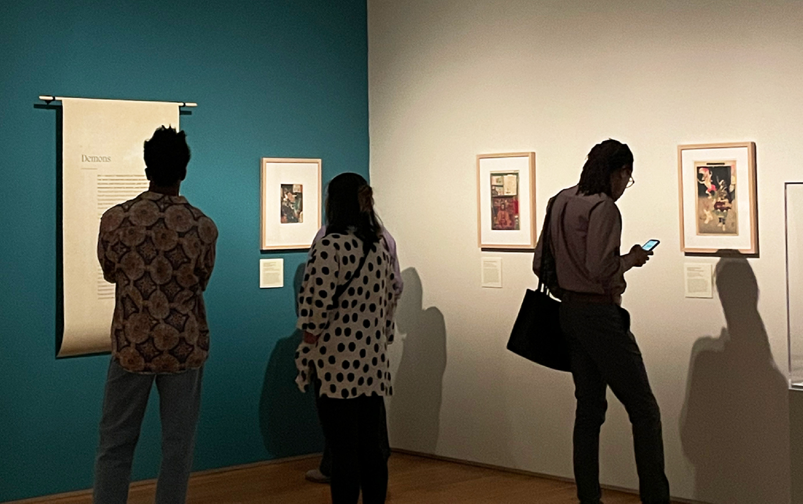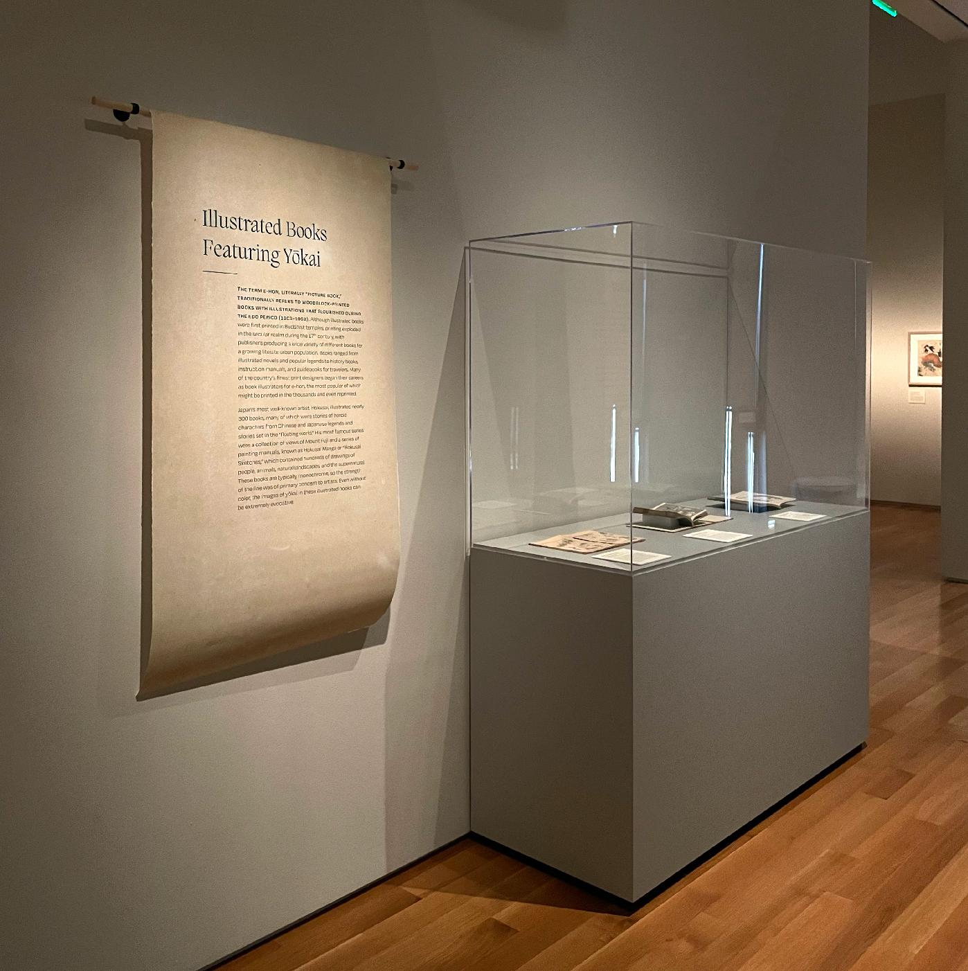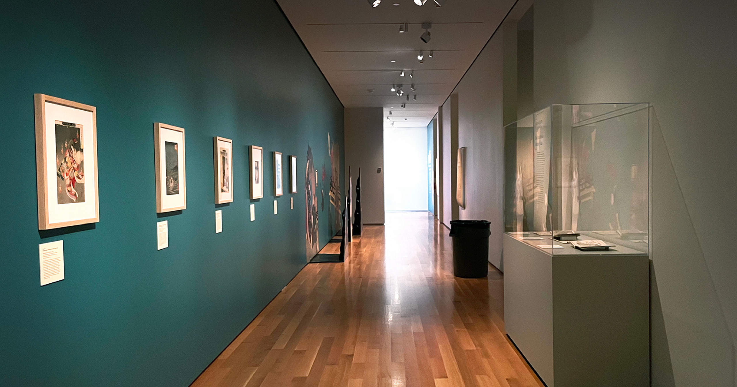 We curated and designed the exhibit space with teal accent walls, lightweight scroll-like forms and subtle animations projected on large mesh drapery in each room that evoked and immersed visitors into the ghostly apparitions of the Yōkai. The ambient low lighting and spotlights give each print its own moment in time. Some scenes also came to life using wood paneling as an invitation for visitors to interact and be a part of the Yōkai’s tales.