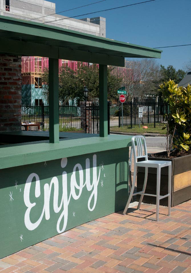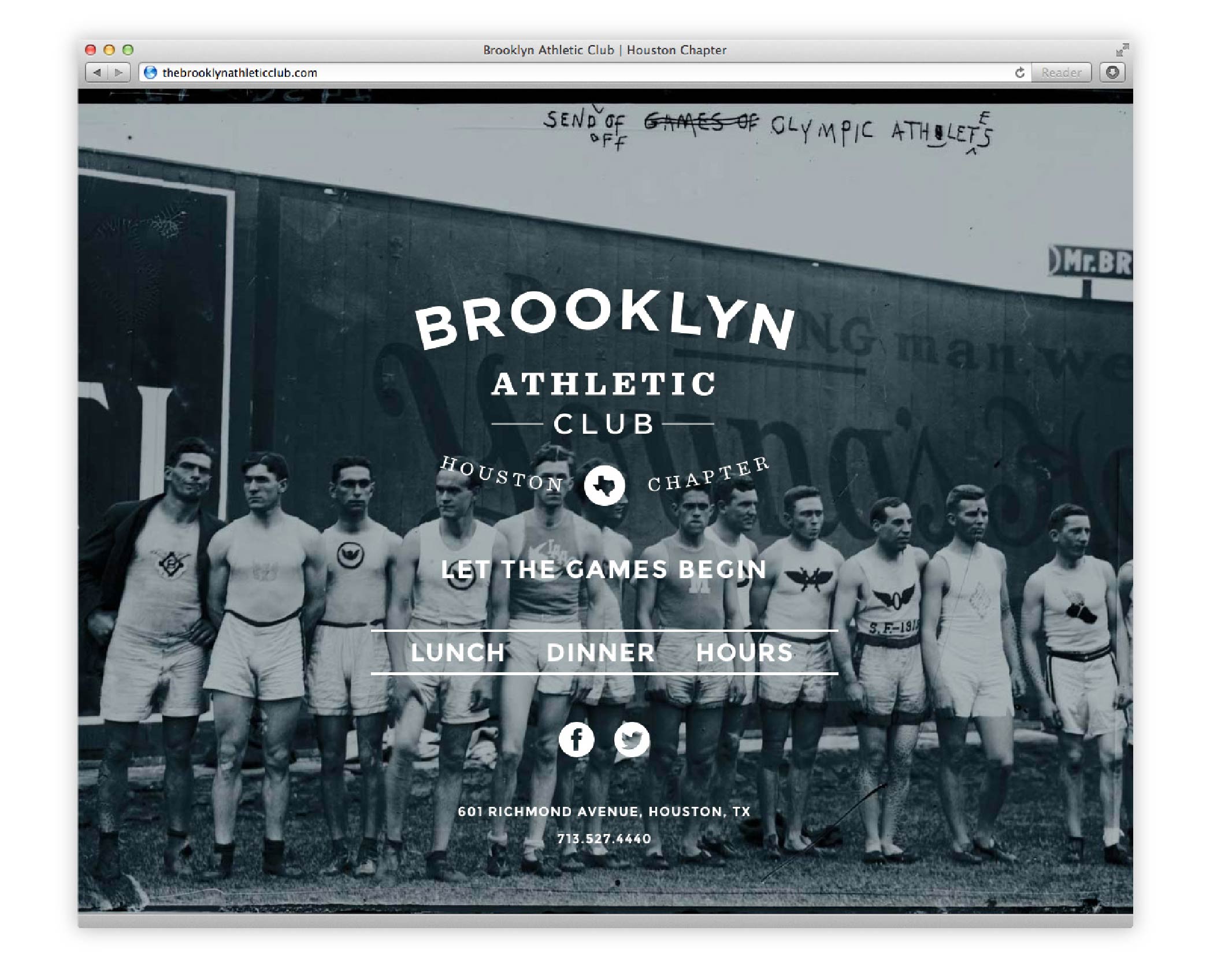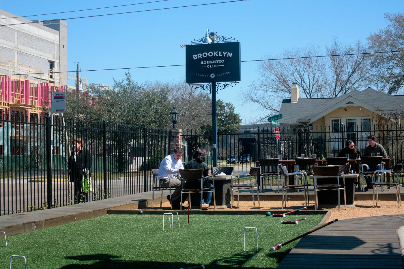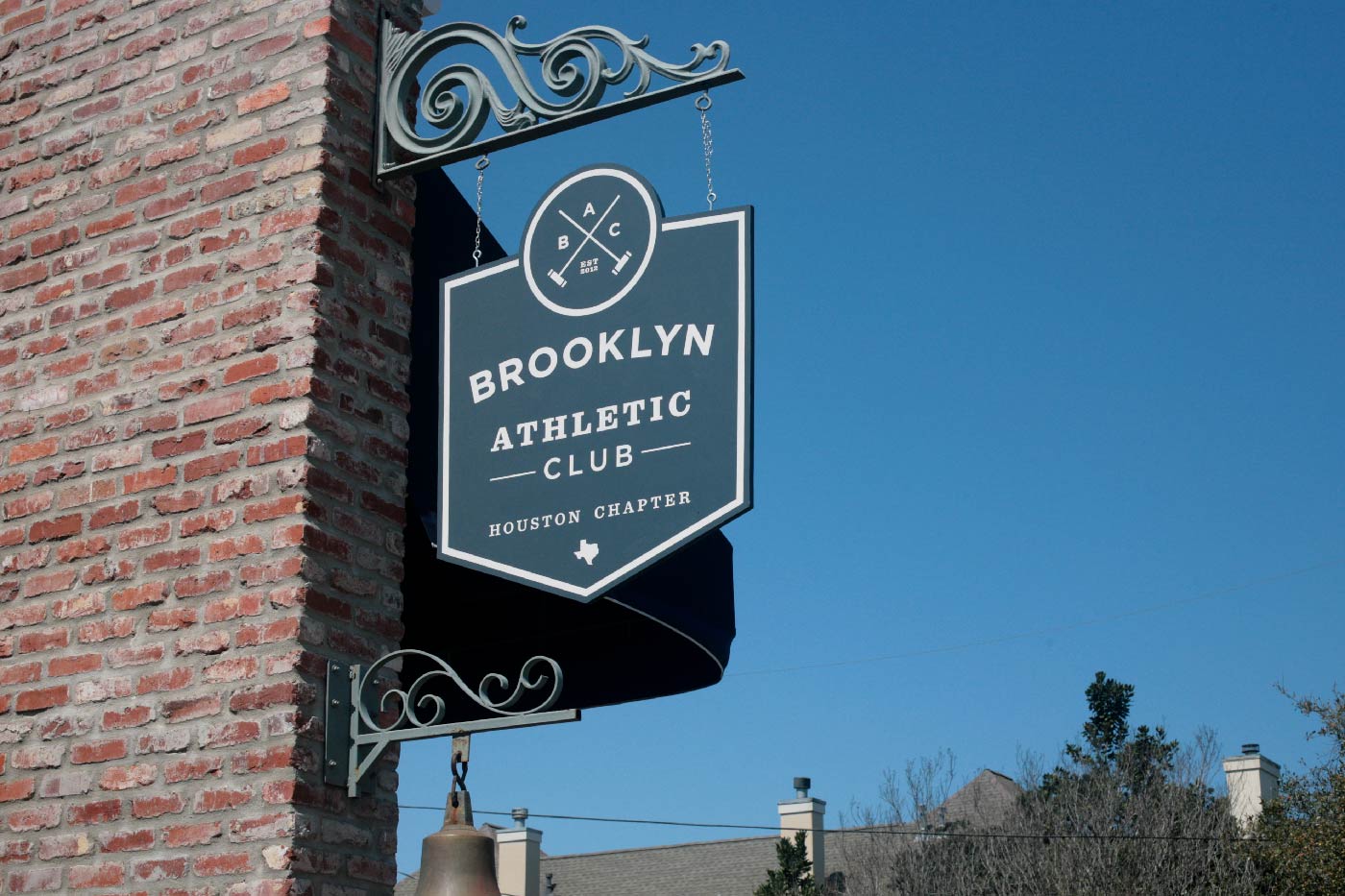 Brooklyn Athletic Club combines American comfort food with outdoor games like bocce and croquet. The branding recreates the attitude of an old-school Brooklyn sports club for Houston through signage, large-scale environmental graphics, landscape design, menus, interior artwork, and a food truck.