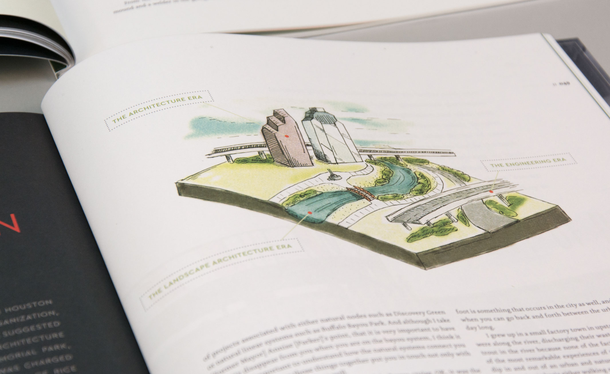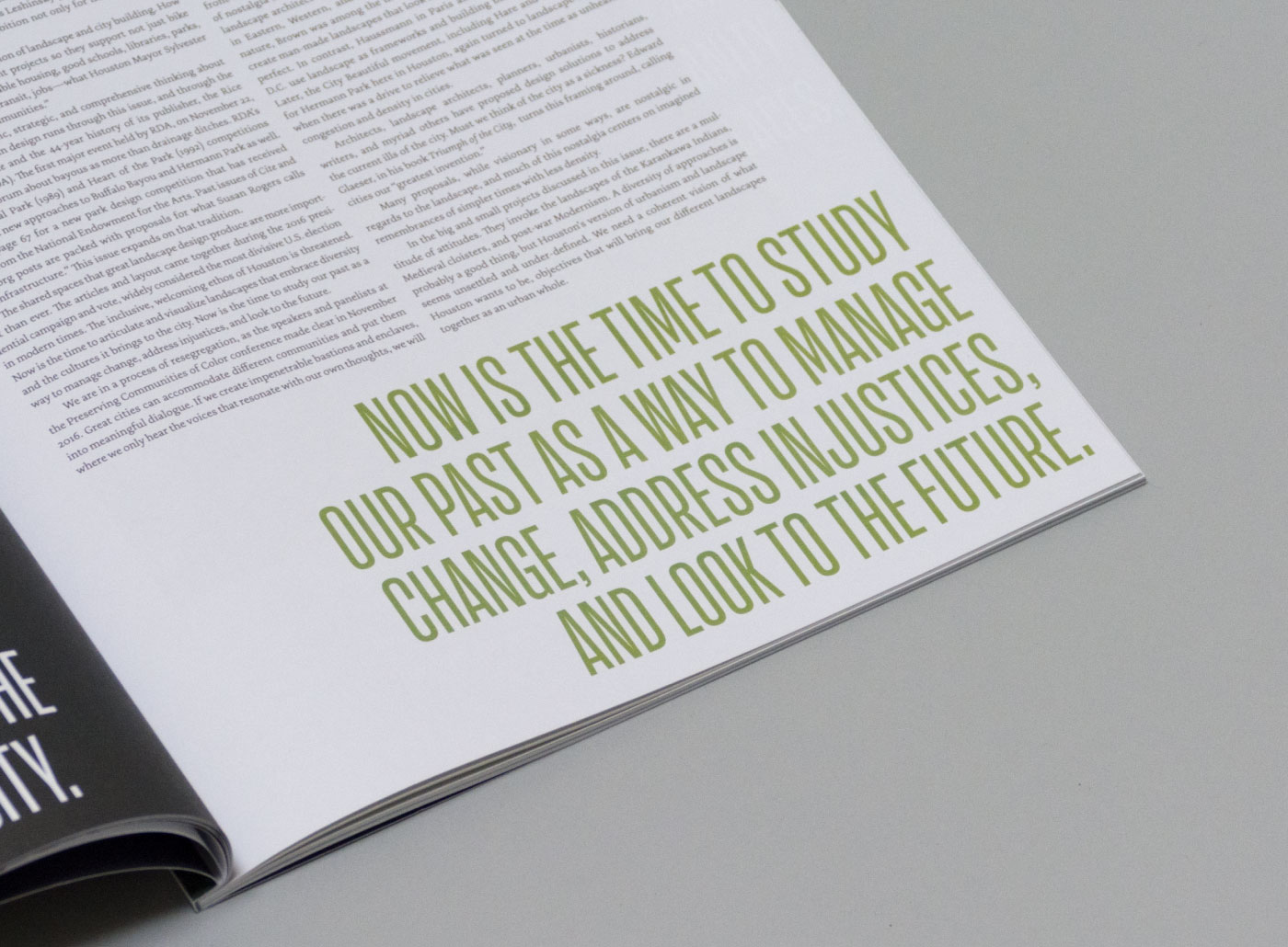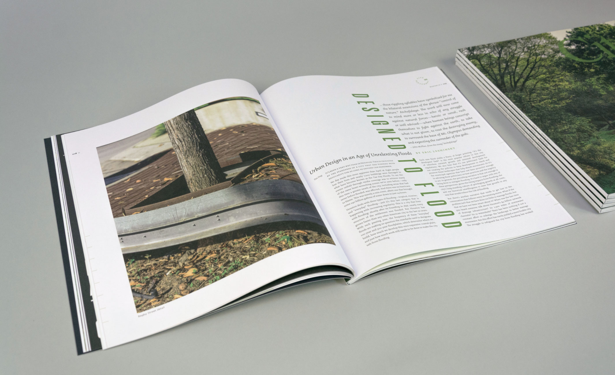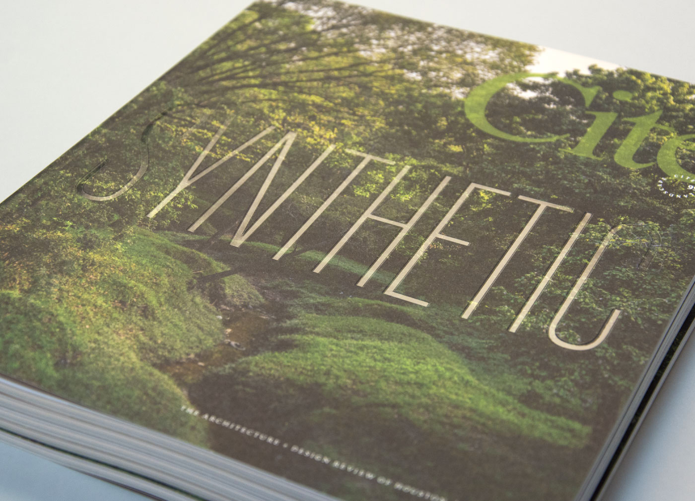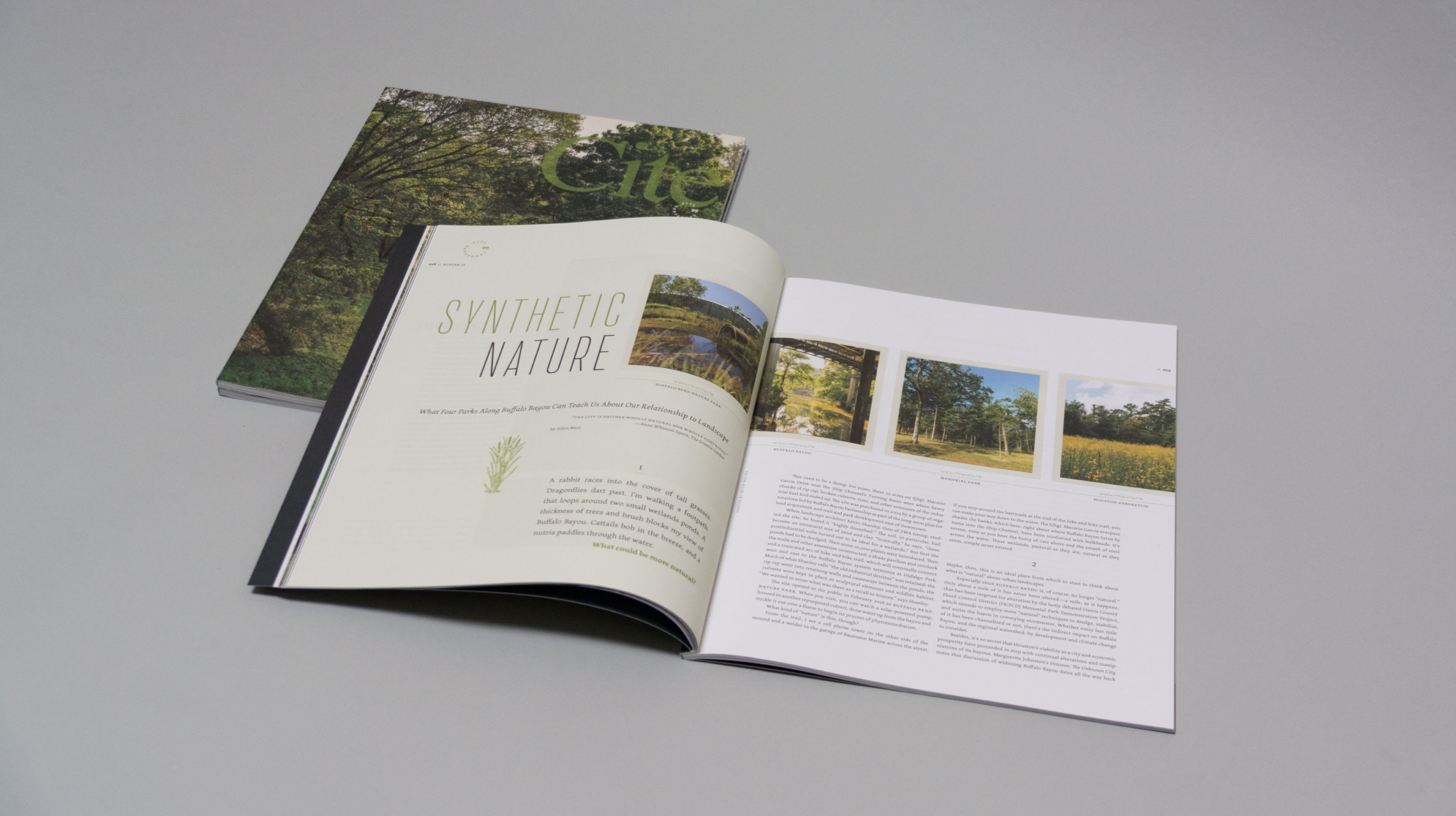 Design and art direction for issue 99 of Cite: The Architecture + Design Review of Houston. The issue focuses on landscape architecture and urban planning, and addresses the discernible interrelationship between the “synthetic” built environment and its relationship to the “natural” landscape. The concept, design and typography uses structural opposition and consonance to reflect the insight required to produce a forward-thinking city engaged in reconstructing landscapes, flood management, and equity.