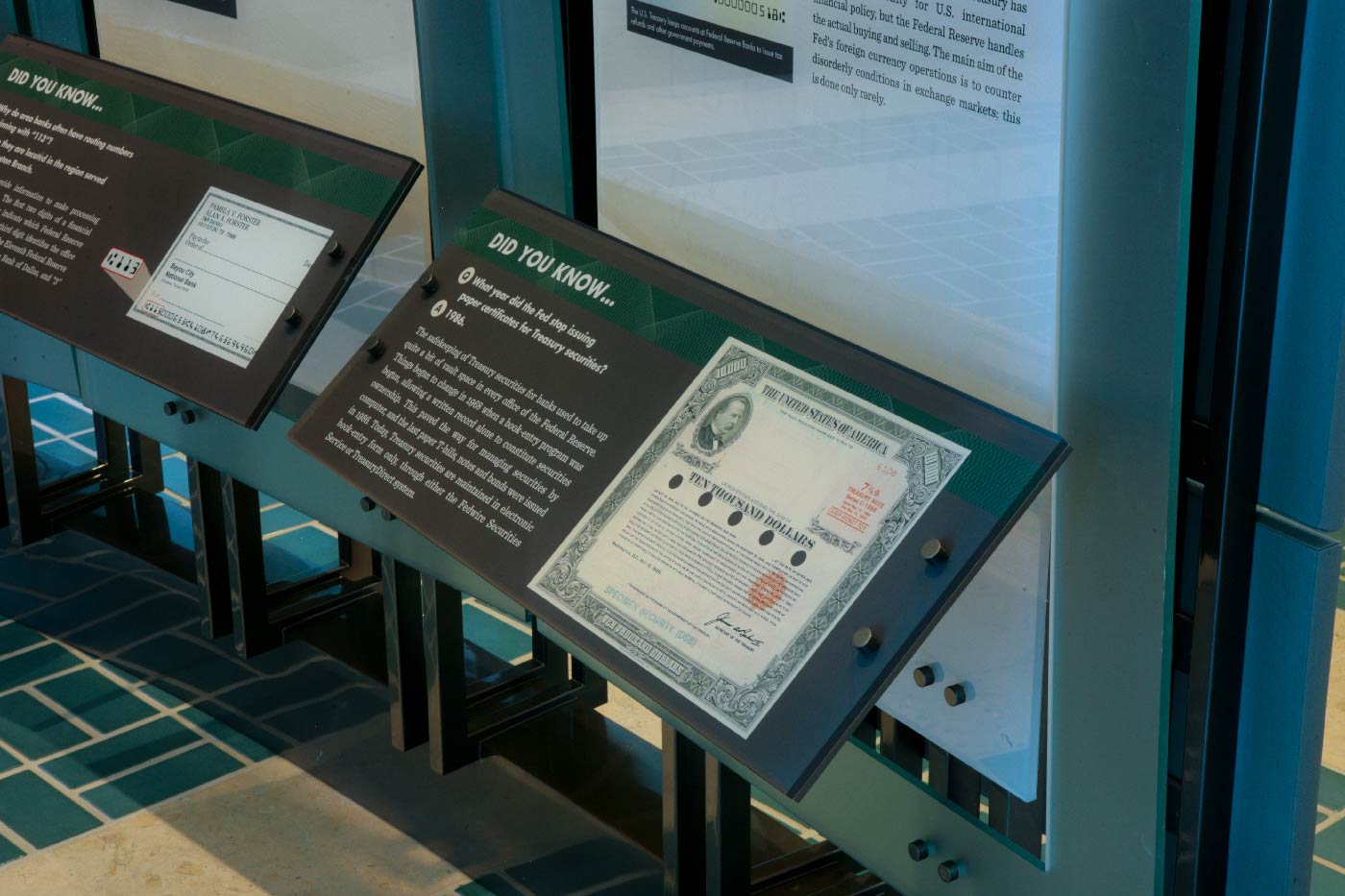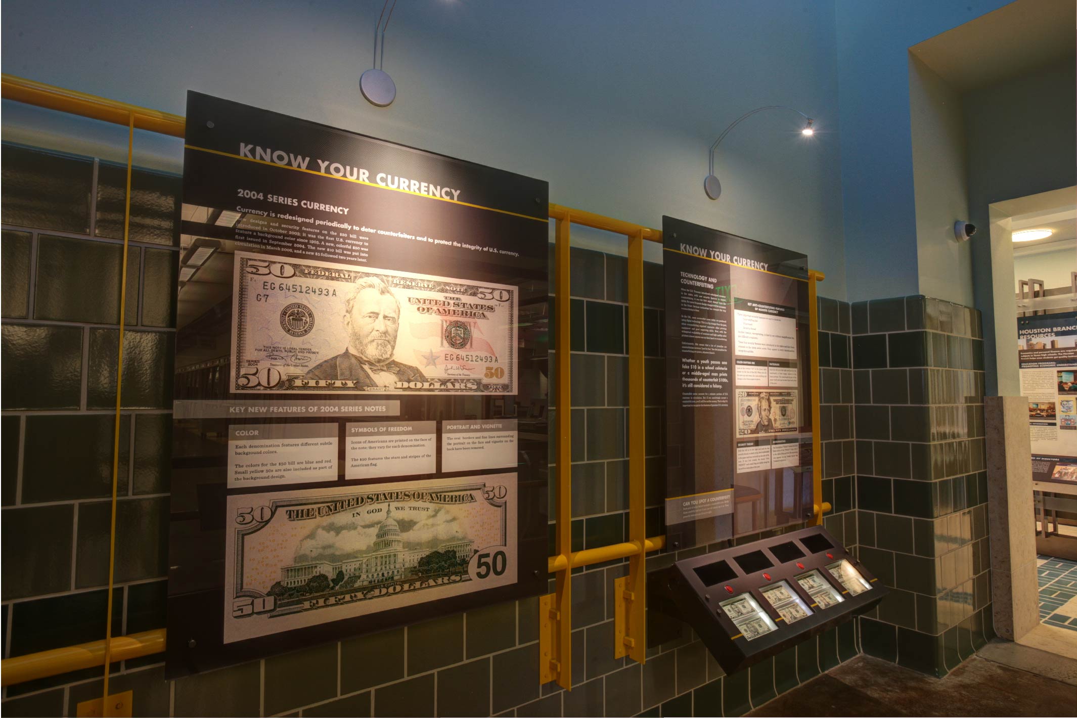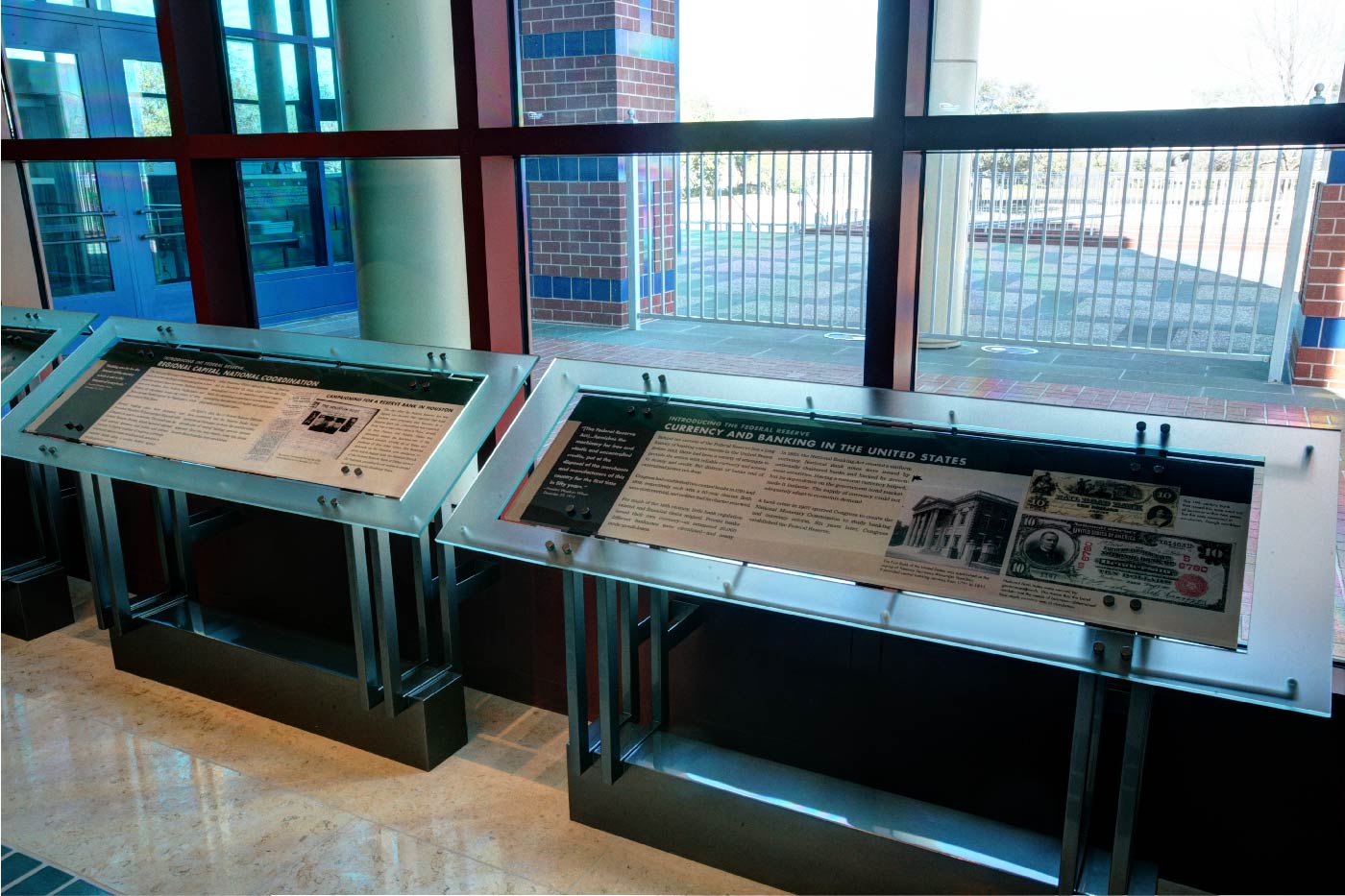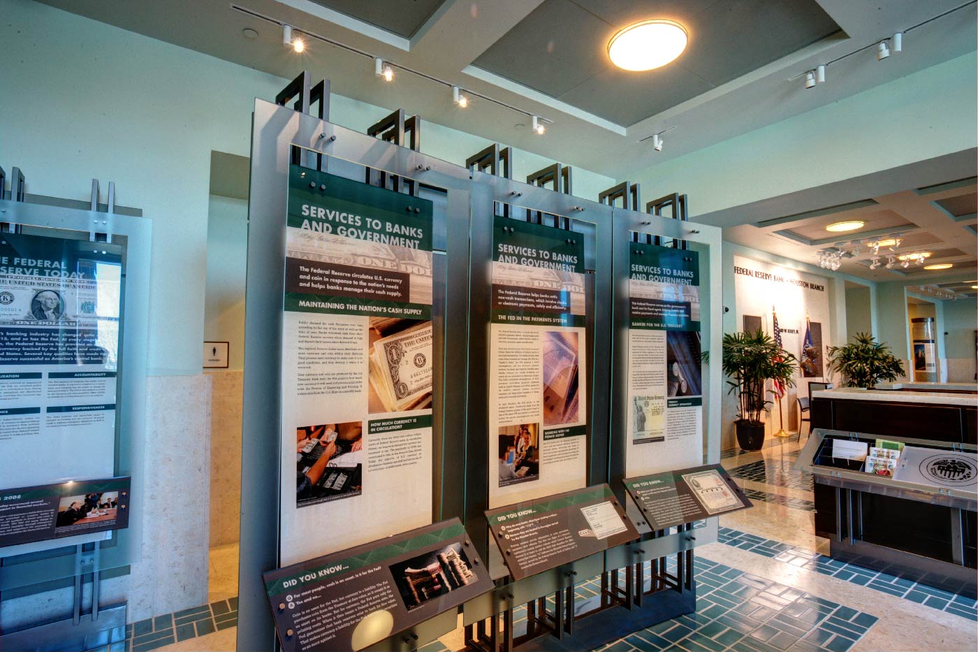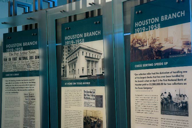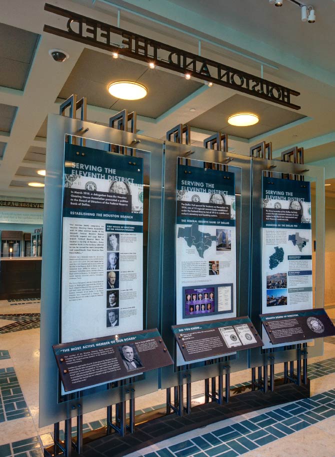 The Federal Reserve Bank of Dallas, Houston Branch is the second largest currency vault in the country, with a bold building designed by architect Michael Graves. Its interior exhibit space covers the history of U.S. currency, economics and the Federal Reserve banks, and the history and economic growth of Houston. Working closely with the staff at the Federal Reserve, we redesigned large-scale exhibit panels that provide insight into the history and role of the Federal Reserve.