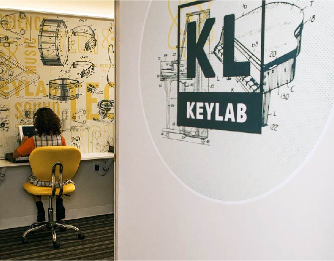 Keylab is a new modern music, arts, and technology education studio in Brooklyn, New York that offers private lessons, group classes, and workshops for people of all ages. The brand and graphics created reflect the idea that music education is both a science and an art, rooted in history, and uses the newest technology to create.