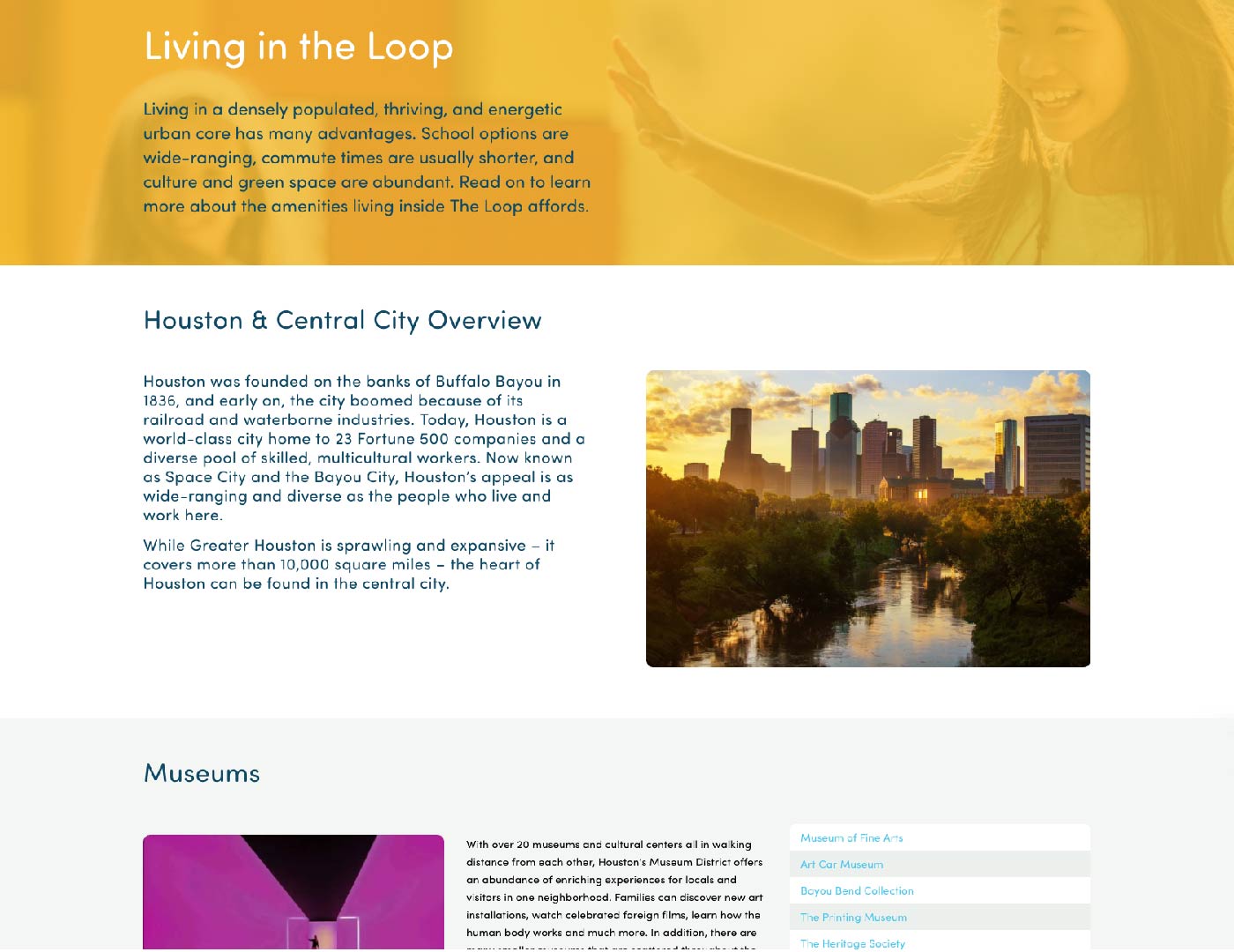 The Learn Central interactive website was created to promote the outstanding schools, diverse mix of neighborhoods, and top-notch cultural and entertainment offerings within Houston’s 610 Loop. We believe Houston’s inner loop is a great place to run a business, raise a family and enjoy a fulfilling lifestyle.