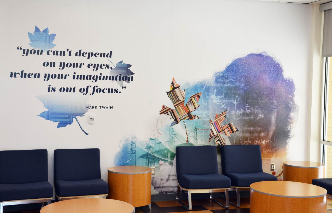As libraries are a collection of humankind’s output and understanding of our universe, the individual’s mind is a collection of memories, dreams, and ideas. This concept inspired us to create unique student portraits that reflect their dreams, aspirations, personal history, and interests. After interviewing them and photographing their silhouettes, we created dream-like collages to represent each of them.