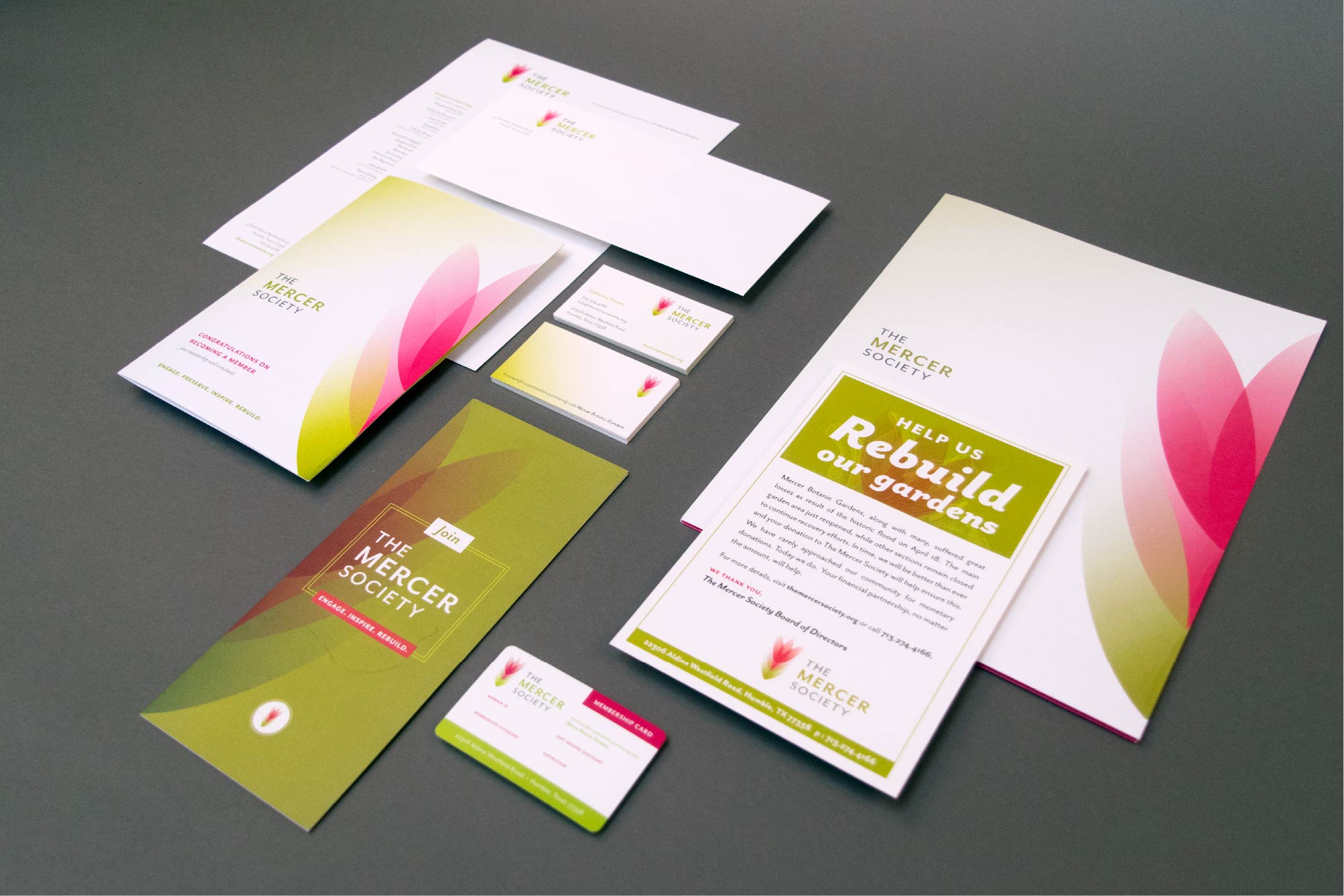 The Mercer Society is the non-profit organization that works to enhance and beautify the Mercer Botanic Garden, a 300-acre horticultural treasure that showcases the Gulf Coast region’s largest collection of native and cultivated plants, and serves over 250,000 yearly visitors. Ravaged by floods, we initiated rebranding and collateral design as a fundraising effort to restore and revitalize the gardens.
